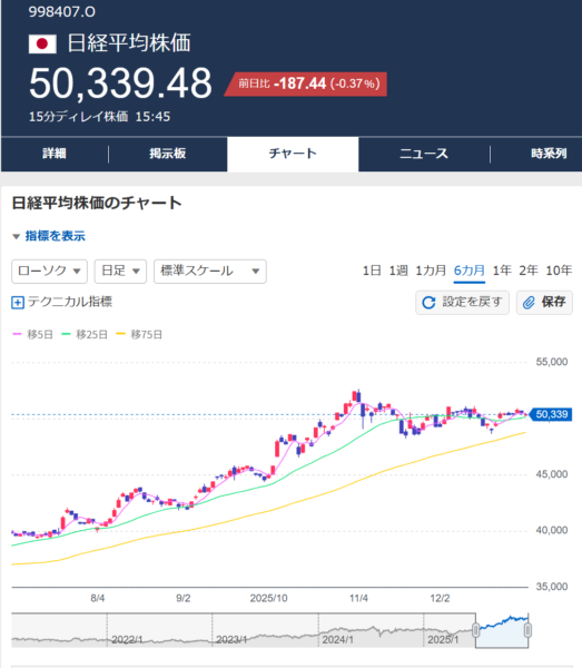2025년 12월 30일 니케이 종합지수 – 50,339.48