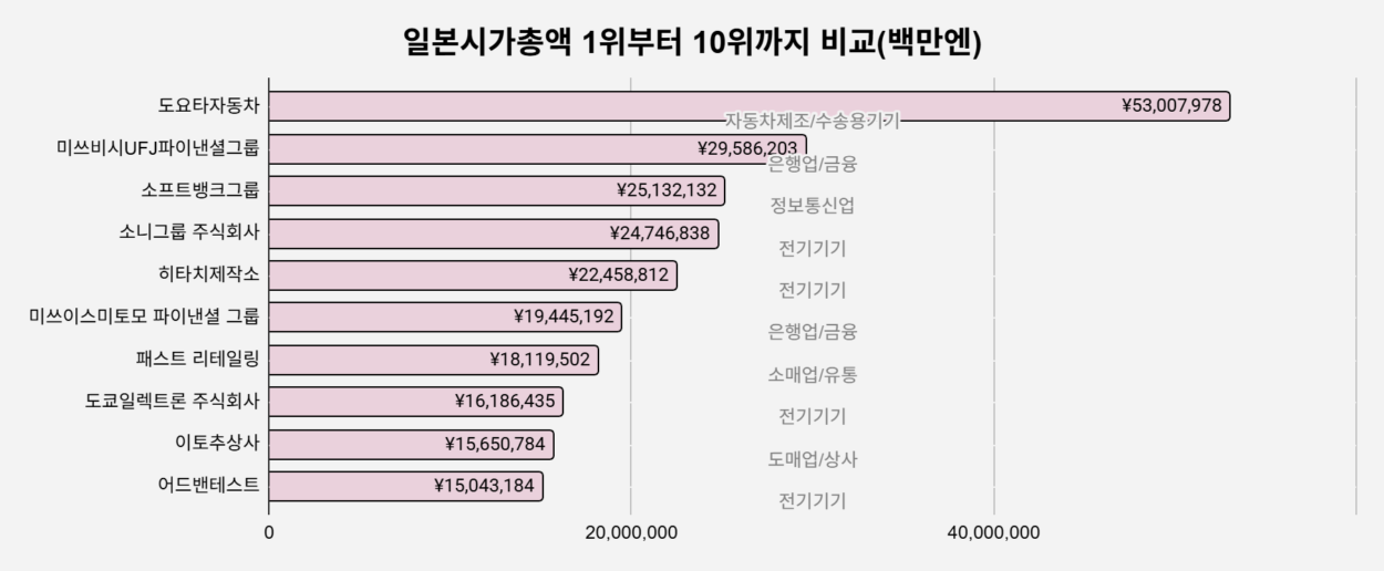 일본 시가총액순위 1위에서 10위까지 비교하기